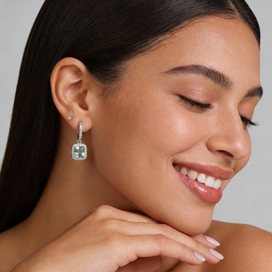 Lumière Pavé Hoop Earrings with Princess-Cut Green Halo