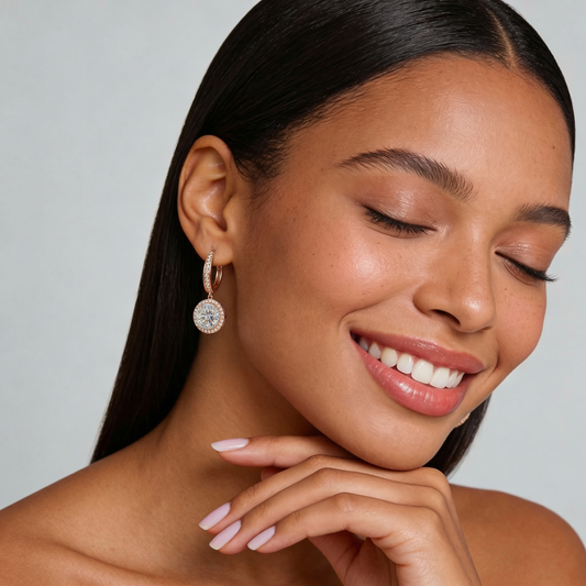 Lumière Decorative Halo Drop Earrings – Rose Gold